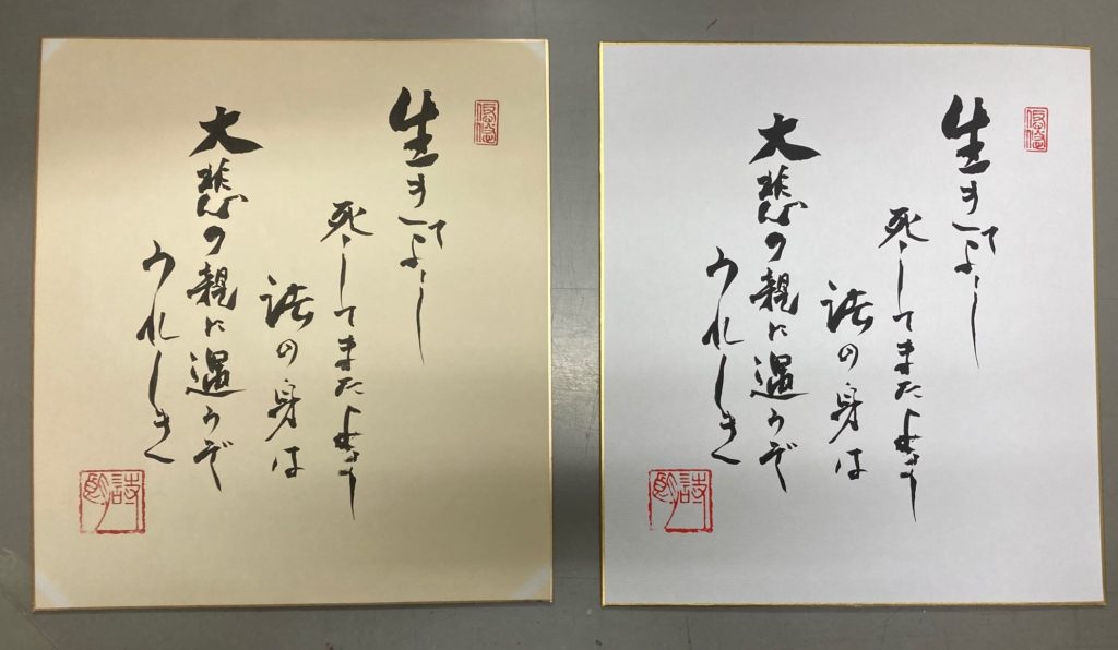 2022年1月21日 / 最終更新日時 : 2022年1月21日 koueisya 特注品 色紙額 色紙額を作らせてもらいました。 上の写真の左側が原稿です。 (年代が分かる程度に変色していました) 上の写真右側の色紙が今回新たに印刷したものです。 額に入れたらとても見栄えが良くなりました! ご依頼ありがとうございました!